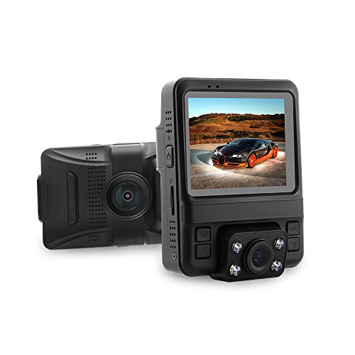 Mini dual lens dash camera for cars: small Size, front facing and back facing camera in one body. DUAL CAM MODE simultaneously captures the road ahead and the cabin in HD video, bringing convenience for you to take video at front and back at the same time