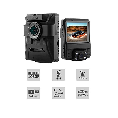Azdome Dual Lens Dash Cam Vehicle Camera Recorder GS65H with Sony Exmor Sensor 2.4’’LCD 1080P FHD Wide-Angle View Lens G-sensor Night Mode 2-Port USB Charger (Not support GPS)