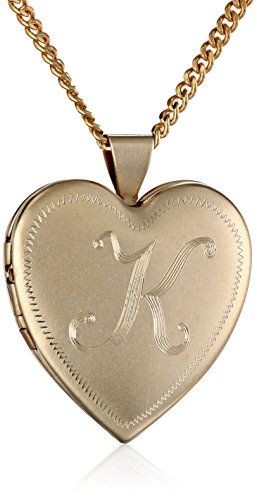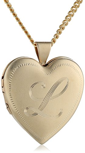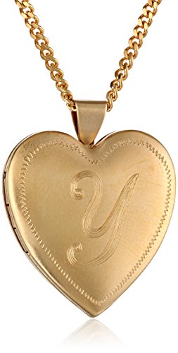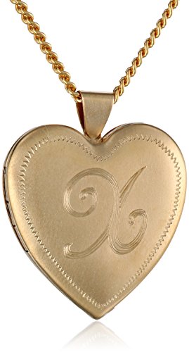 18k Gold Plated 26mm (1") Personalized with Initial-M Heart Chain Locket Necklace, 24"