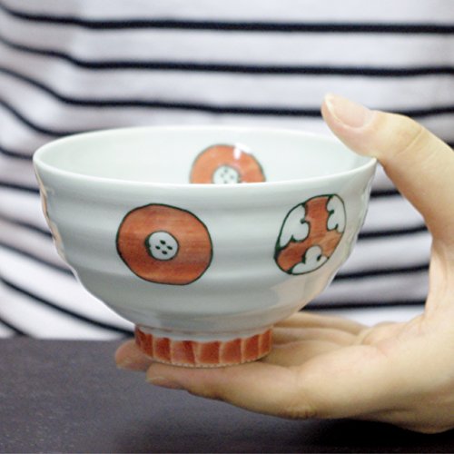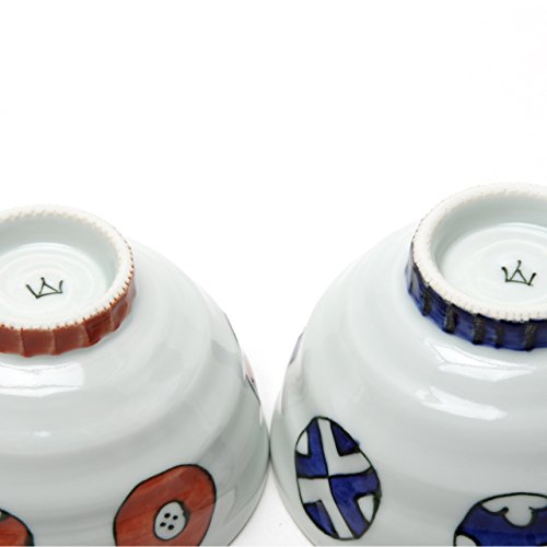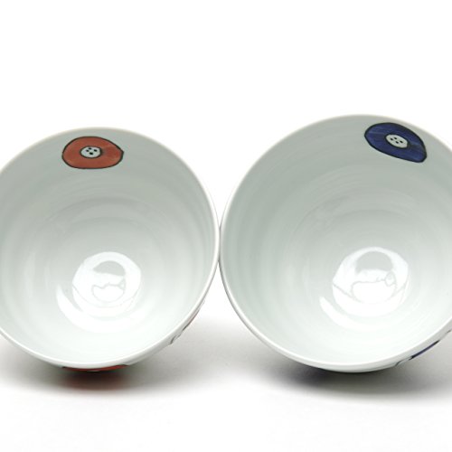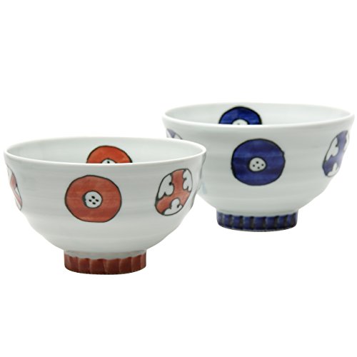 원본상품명: 波佐見? 染丸紋 しのぎ高台夫婦茶碗セット(大:?/小:赤) 12cm/11.5cm 山下陶苑 yas0014