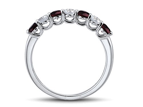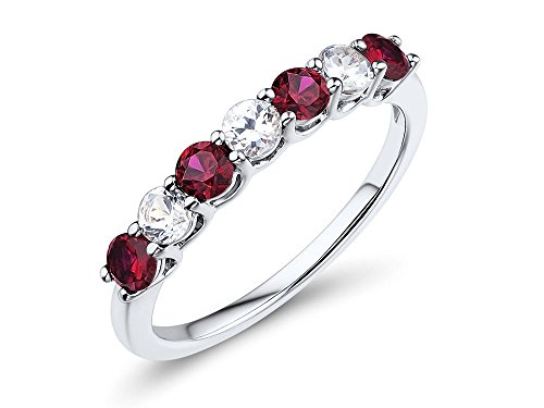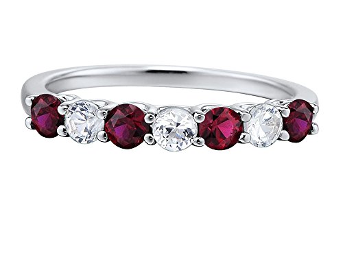 -. Feature : Beautiful Lab Created Ruby and White Sapphire Band / Perfect for Anniversary, Wedding or Stacking. / 4 Round Lab Created Rubies and 3 Round Lab Created White Sapphires - 3 MM each / Classic Shared Prong Setting / Rhodium Plated Sterling Silver