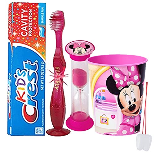 -. Title : Disney Minnie Mouse Inspired Girls 4pc Bright Smile Oral Hygiene Set! Flashing Lights Toothbrush, Toothpaste, Brushing Timer & Mouthwash Rise Cup! Plus Bonus "Remember to Brush" Visual Aid!