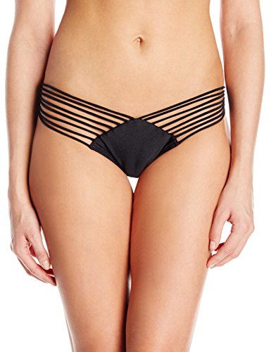 Luli Fama Women's Verano De Rumba Strappy Brazilian Ruched Back Bikini Bottom,Black,X-Small