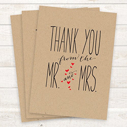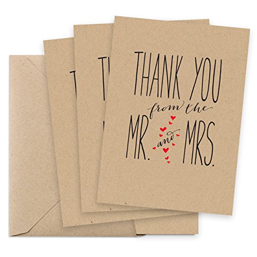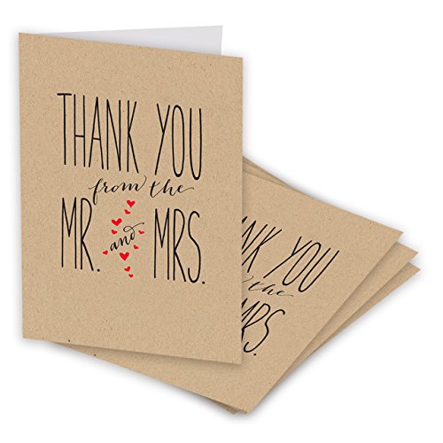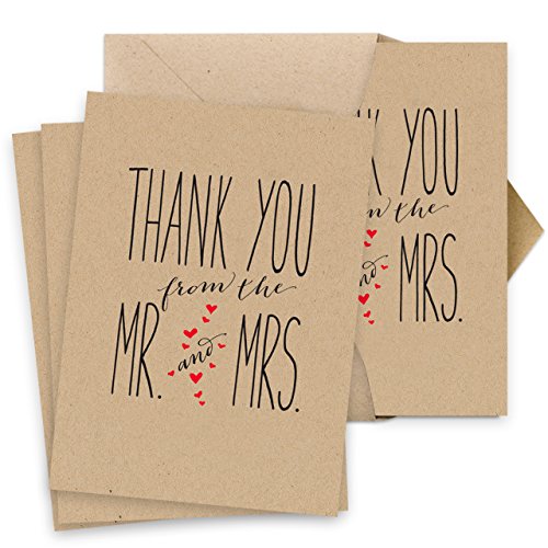 -. Title : Canopy Street Mr. and Mrs. Thank You Cards, Blank Inside with Kraft Envelopes, Set of 36