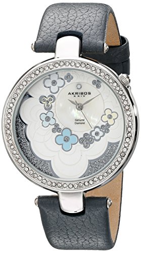 -. Title : Akribos XXIV Women's AK601GY Lady Diamond Flower Dial Swiss Quartz Leather Strap Watch