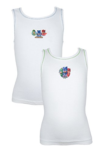 -. Binding : Apparel -. Brand : Cartoon Character Products -. Color : White -. Department : boys -. Feature : Pack of 2 Boys PJ Masks Vests / Featuring Cat Boy and Gekko / Coloured stitch detailing around the arms and neck line / Fully machine washable at 40 degrees -. MPN : Z01_27993 -. PartNumber : Z01_27993 -. ProductGroup : Apparel -. ProductTypeName : UNDERWEAR -. Title : Cartoon Character Products Pack Of 2 Boys PJ Masks Cotton Vests 18 Months - 5 Years Various Designs