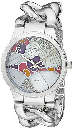 -. Title : Akribos XXIV Women's Genuine Diamond Accented Mother-of-Pearl Landscaped Dial with Silver-Tone Chain Link Bracelet Watch AK931SS