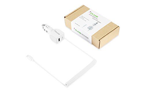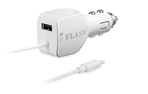 iFlash 24W / 2.4A + 2.4A (4.8A max) Portable Dual Port USB Car Charger With Built-in Micro USB Cable Compatible for Samsung Galaxy S6 Plus / S6 Edge / S6 S5 S4 S3 S2, Note 5 4 3 2, Moto X G E (White)