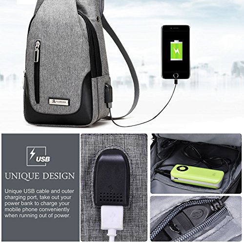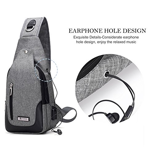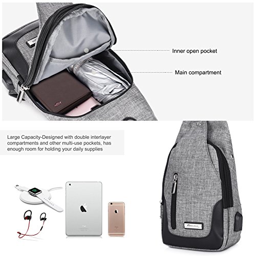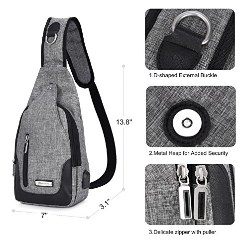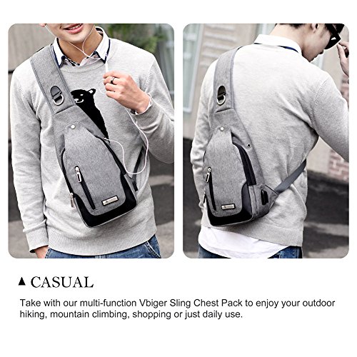 -. Title : Vbiger Sling Bag with USB Rechargeable Port Chest Pack Shoulder Backpack Crossbody Multipurpose Daypack for Men and Women