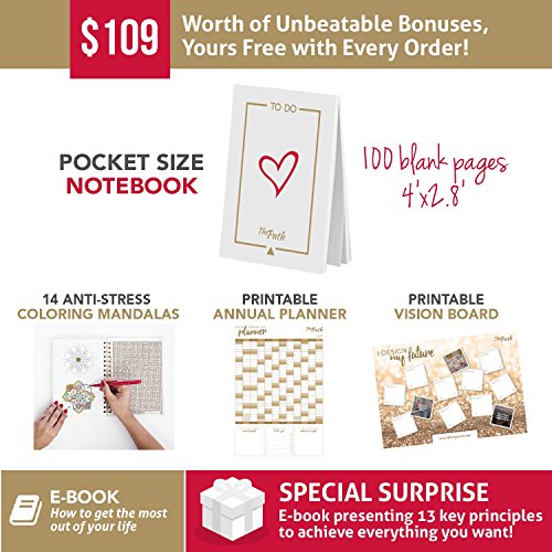 ✔ 5 EMPOWERING BONUSES: mini Notebook pocket size for daily to-do lists + 14 Coloring Mandalas to distress + Printable Vision Board + 2017 Calendar Annual Planner + Life Mission set up Guide.