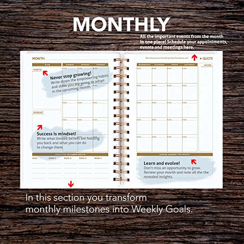 ✔ DESIGNED TO MAKE YOU MORE SUCCESSFUL: your calendar planner has layouts that help you set Yearly, Monthly Weekly goals and your Life Mission, with a flexible system to move you forward toward achieving them.