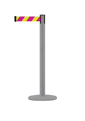 Tensabarrier MARINEPOST-36-MAX-NO-D5X-C Marine Post, 13' length Chevron Magenta & Yellow belt, 38" Height, 2" wide, 156" Length, Gray