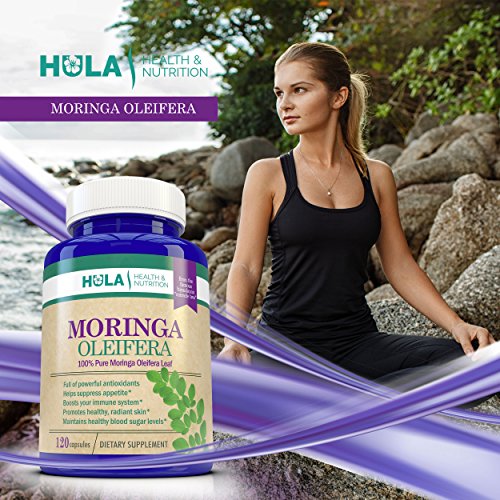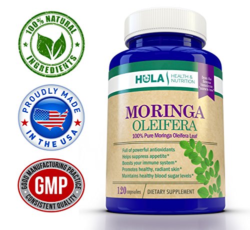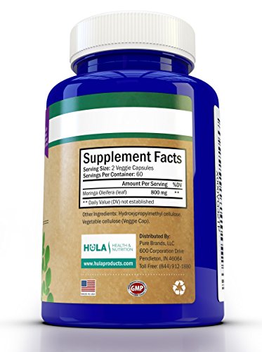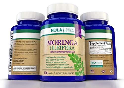 -. Binding : Health and Beauty -. Brand : Hula Health & Nutrition -. Color : blue -. Department : Dietary Supplements -. EAN : 0683203921558 -. Feature : MORINGA OLEIFERA IS A TRUE NATURAL SUPERFOOD! From the famed "Miracle Tree", our Moringa Oleifera Leaf is packed with Vitamins, Minerals, Antioxidants, and Essential Amino Acids / HEALTH BENEFITS INCLUDE: Reduced Cravings, Anti-Inflammatory Properties, Less Stress, Improved Digestion, Healthy Circulation, Beautiful Skin / ENERGIZE YOUR BODY: One of the most immediate benefits noticed by those trying Moringa for the first time is the energy they feel to help fuel their active lifestyles / STUDIES HAVE SHOWN THAT, OUNCE FOR OUNCE, Moringa Oleifera Leaves contain more Vitamin A than Carrots, more Iron than Spinach, more Calcium than Milk, more Potassium than Bananas, and more Vitamin C than Oranges / MADE IN THE USA in an FDA-registered facility that adheres strictly to CGMPs (Current Good Manufacturing Practices) -. IsAdultProduct : 0 -. Label : Hula Health & Nutrition -. Manufacturer : Hula Health & Nutrition -. PackageQuantity : 1 -. ProductGroup : Health and Beauty -. ProductTypeName : HEALTH_PERSONAL_CARE -. Publisher : Hula Health & Nutrition -. Size : Large -. Studio : Hula Health & Nutrition -. Title : Pure Moringa Oleifera Leaf from the "Miracle Tree" of the Himalayas - 120 Veggie Capsules - Nature's Multivitamin - Packed w/ Nutrients and Antioxidants - Full Month's Supply of 1,600mg Per Day -. UPC : 683203921558