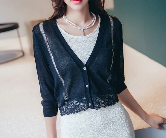 商品名:カーディガン 花柄 薄手 ハーフ丈