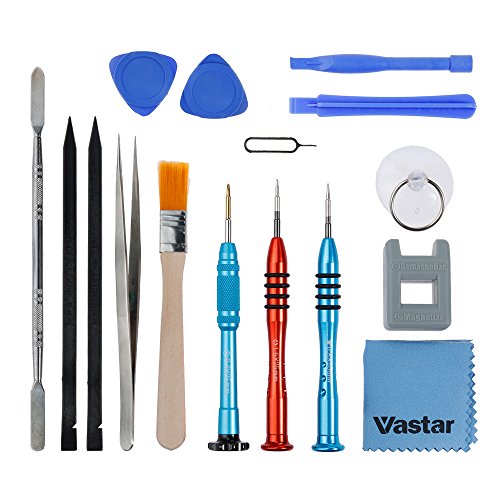 Vastar 16Pcs Cellphone Repair Tool Kit for iPhone Precision Screwdriver Set with Magnetizer/ Demagnetizer Tool and Opening Pry Tools for iPhone 8/8 Plus, 7/7Plus, 6P/6S/6/5S/5/5C/4S/4/SE, iPod, iTouch