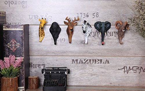 Bueer 6 Pack Resin and Iron Rustic Vintage Wall Hook Wall Rack with Hook (Animals)