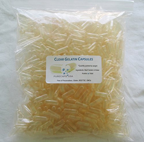 1000 Empty Gelatin Capsules Size 1 (Kosher/ Halal) Gel Caps By PurecapsUSA