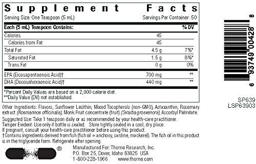 Thorne Research - Omega Superb - Easy Dosing Liquid Fish Oil Supplement - Lemon Berry Flavor - 8.45 fl oz (250 mL)