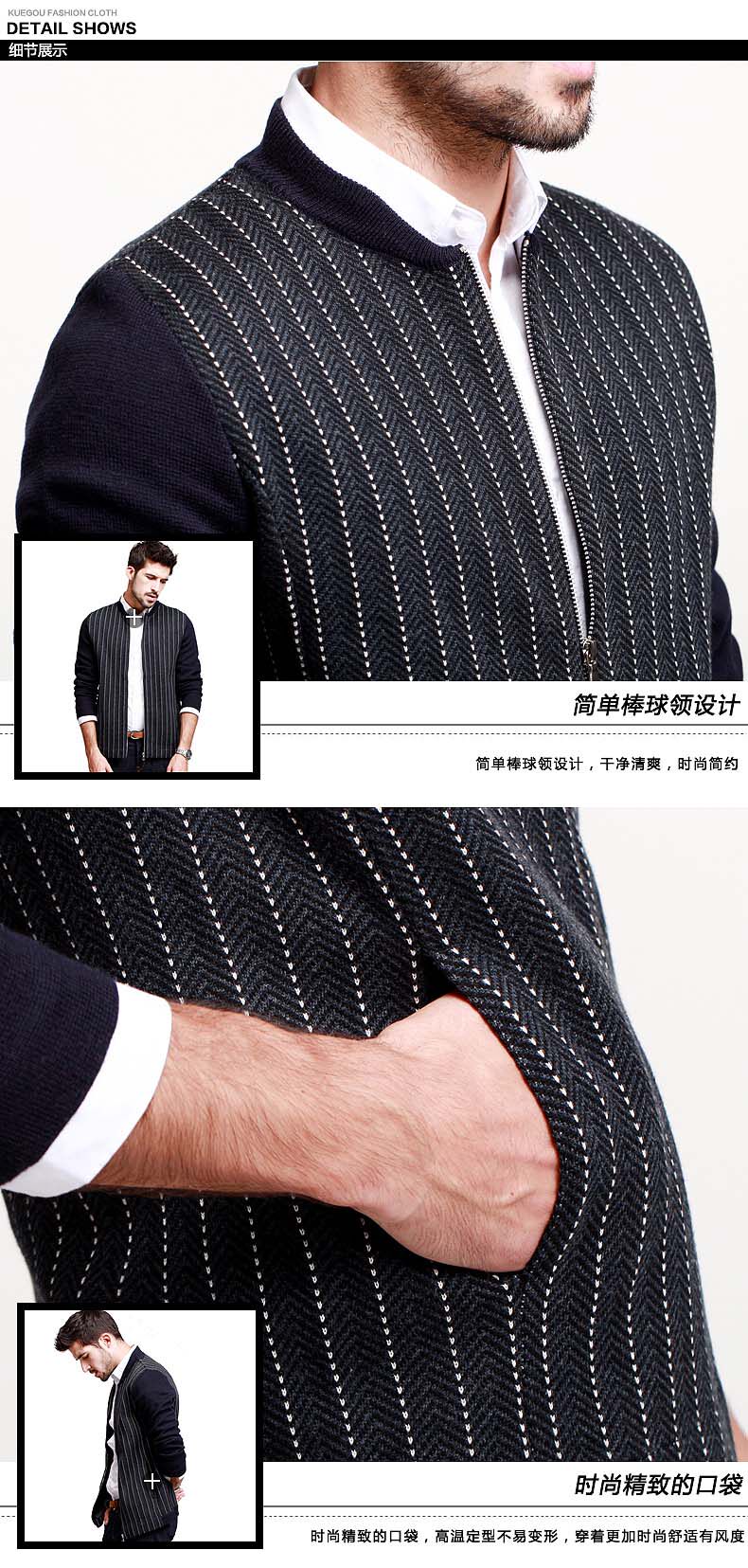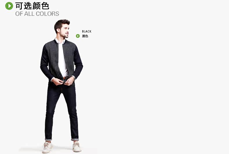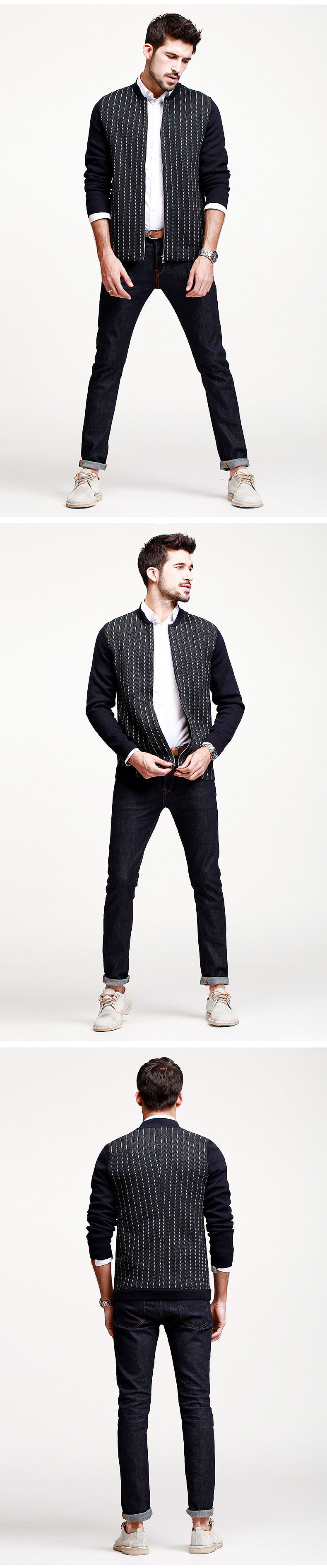 ②设计:时尚经典开衫,帅气干练,领部坚韧挺拔,别出心裁的条纹针织+撞色拼接设计,赋予衣身简约层次感,合体修身裁剪版型,充满艺术范儿气质。
