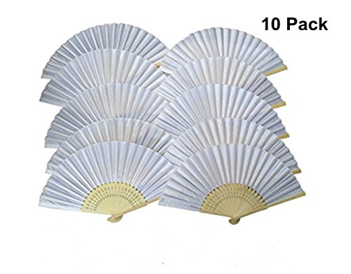 Good news 10pcs Folding Fan White Silk fan Bamboo Handheld Folded Fan Bridal Dancing Props Church Wedding Gift Party Favors Home Office DIY Decor ( white silk fan)