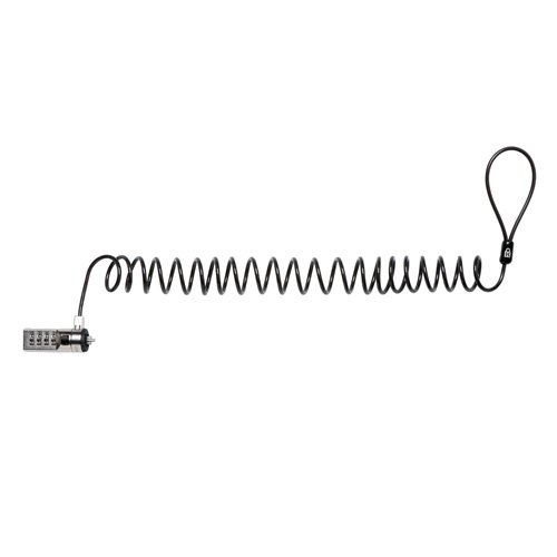 Get computer security, quickly and easily. Protect your laptop and personal information while on the go with the Kensington Portable Combination Laptop Lock. The push button design offers one hand operation for easy installation while the Kensington T-bar secures the lock to your laptop. The self-coiling cable stretches to 6 feet to anchor to a desk or fixed structure yet shrinks down to just 3" for easy packing. The Clicksafe attaches to your laptop via the Kensington Security Slot found in 99% of computers.