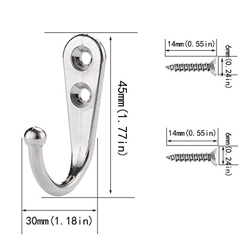 - Wall mounted hook measurement:45 x 30 mm/1.77 x 1.18 inches,the screws is 14 mm(0.55in) long and 6 mm(0.24in) in screw head diameter
