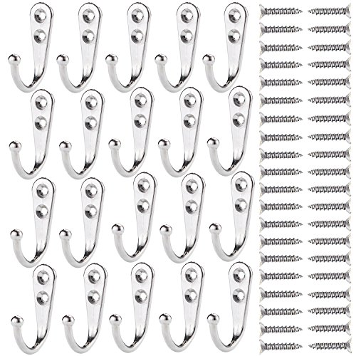 Maosifang 20 Pieces Wall Mounted Hooks Single Robe Hooks Coat Hanger With 40 Pieces Screws,Silver