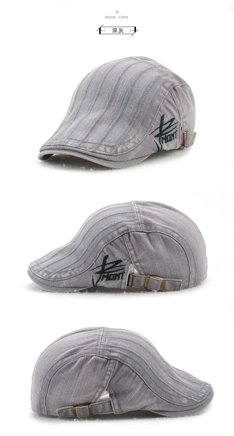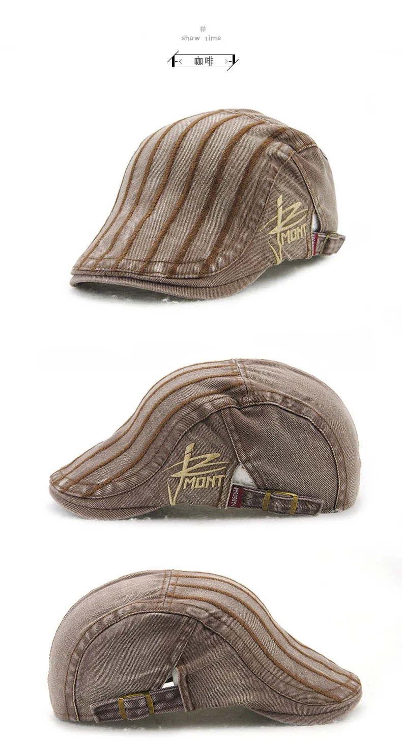 | [해외]2017 새로운 패션 성인 모자 남성 베레모 모자 레저 순수한면 베레모 여자 자수 스트라이프 베일리 빈티지 Casquette |