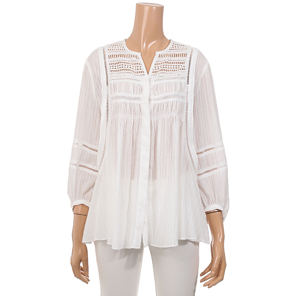 면100%에 레이스로 여성스럽고 셔링으로 편안함을 연출한 블라우스