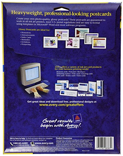 Avery Ink Jet Glossy Photo Quality Post Cards, 4-1/4" x 5-1/2", 100 per Pack (8383)