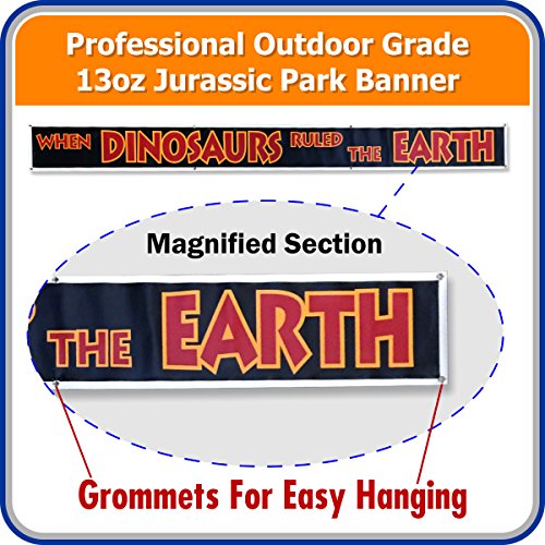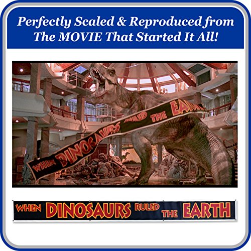 Sizes:1FT x 10FT, 2 FT x 20 FT, 3 FT x 30 FT WATCH OUT! Dinosaurs Approaching! Transform any room or man cave into a Jurassic world with this 10ft-30ft Large Life-Size Replica Jurassic Park banner captured from THE ORIGINAL JURASSIC PARK MOVIE. Banner reads "WHEN DINOSAURS RULED THE EARTH" Banner reads "WHEN DINOSAURS RULED THE EARTH" Life size replica banner captured from the ORIGINAL JURASSIC MOVIE Better, stronger, and lasts 10x longer than any Jurassic Park poster Perfect for Jurassic themed rooms, man caves and party Comes in 1 FT x 10 FT, 2 FT x 20 FT, 3 FT x 30 FT. Makes the perfect gift for the Jurassic movie fan that loves Props, Posters, Toys, Games, Shirts. Easy to hang. Great for outdoor as well as Indoor Use Comes with a 30 DAY MONEY BACK GUARANTY.Feature