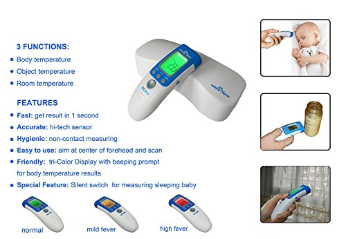 Specially designed to take the Human Body Temperature at CENTER of Forehead from a distance of 1.2 to 2in. (3cm to 5cm). Re-calibration option available; FDA Approved and Pediatrician Recommended