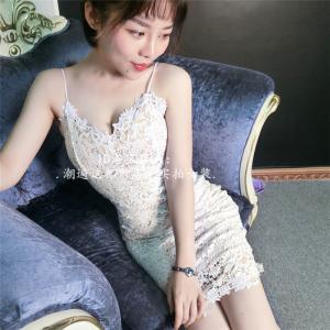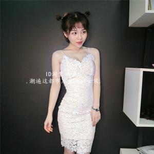 レースワンピース フラワーレース 膝丈ワンピース タイトラインワンピース 透け感 キャミワンピース プチプラ ホワイト