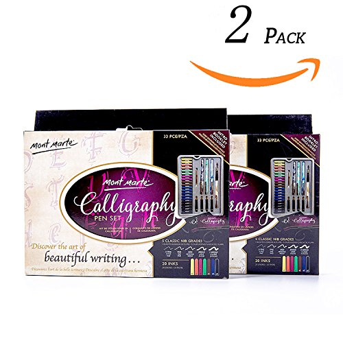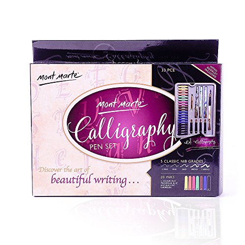 Mont Marte Calligraphy Set, 66Pieces. Includes Calligraphy Pens, Calligraphy Nibs, Ink Cartridges, Introduction Booklet and Exercise Booklet.
