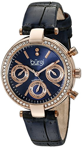 Burgi Women's BUR129BU Diamond & Crystal Accented Multifunction Rose Gold and Blue Leather Strap Watch