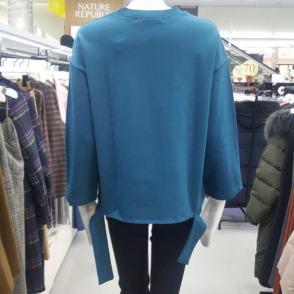 뒤쪽허리 밑단이 컷팅된 기본티셔츠입니다 트렌디하게 코디하기 좋은 칼라와 디자인입니다
