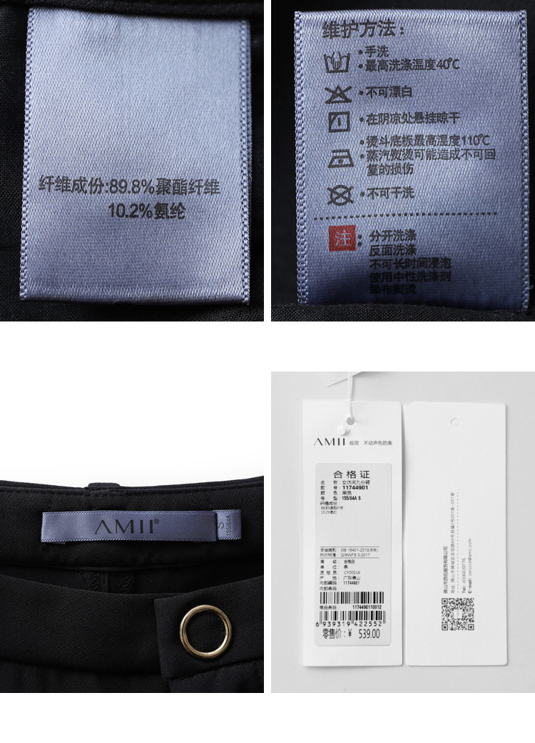 | 洗涤标准: | 悬挂晾干不可干洗不可漂白不可浸泡110℃以下垫布熨烫40℃以下手洗 |