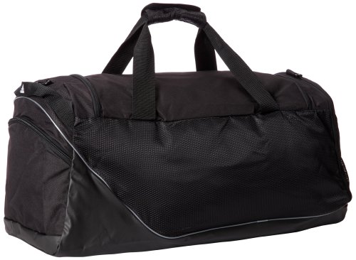 The Team Speed Duffel Large is built for superior team functionality. The large main compartment features an interior zippered pocket for your valuables. On one end cap of the duffel is a freshPAK ventilated compartment, great for keeping smelly shoes and gear separate from the rest of your stuff. On the other side of the bag is a zippered end cap pocket for additional storage. The large, easy-access front pocket with key fob is perfect for quickly stowing items. The ClimaProof water resistant bottom of the bag will protect your stuff from a wet field or gym floor. The dual adjustable, removable shoulder strap, padded air mesh shoulder pad, and wrapped haul handles let you carry your gear comfortably. The additional side haul handle allows for storage of the duffel in a locker and quick access to your bag in an overhead compartment. The screen-printed adidas brandmark and fast 3-Stripes complete the team look. The blank space on the opposite side of the bag and on the end caps leave plenty of space for team branding.