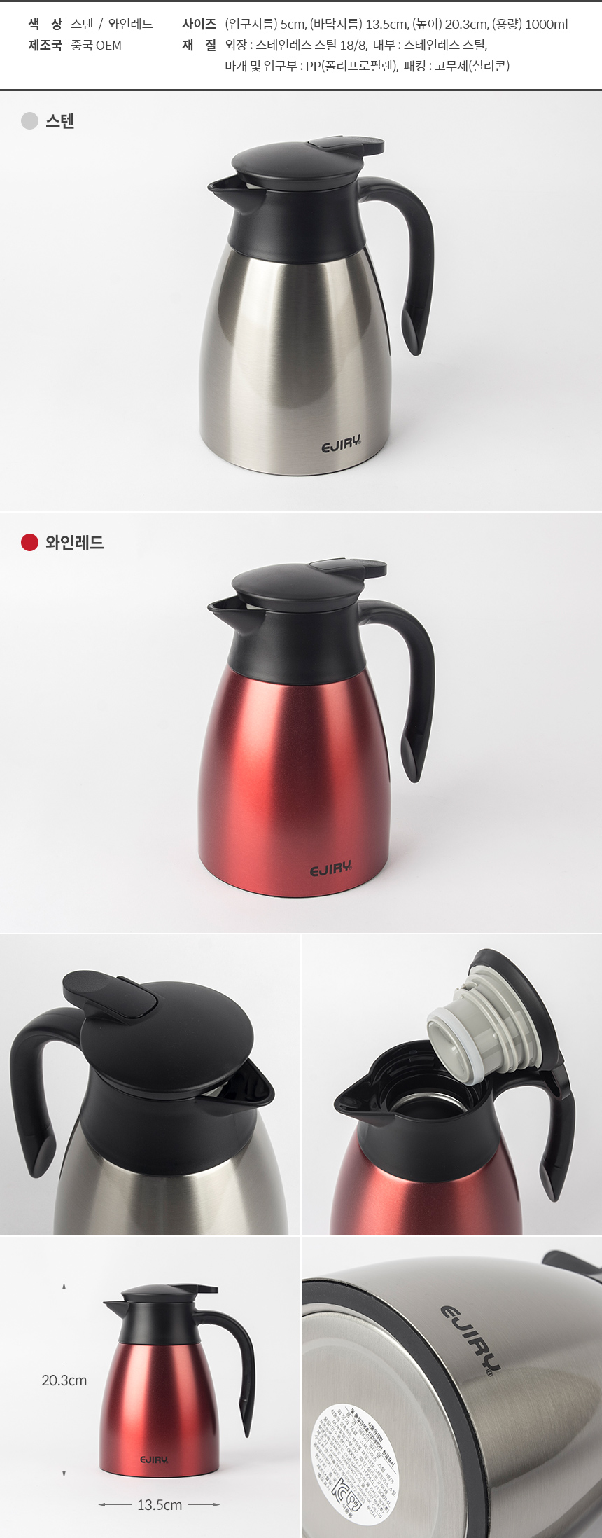 [에지리] 진공 보온보냉 주전자 1.0L