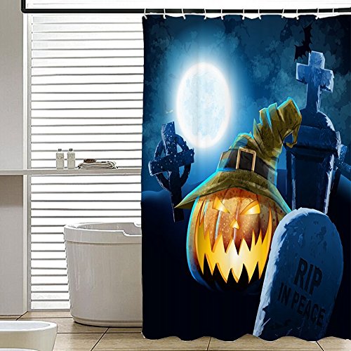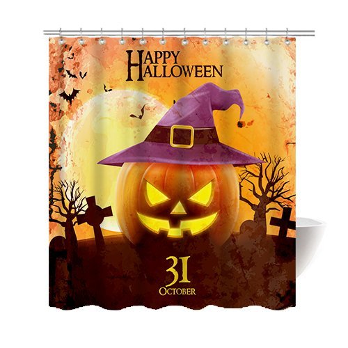 -. Title : Gwein Halloween Night Theme Pumpkins Decorative Bathroom Mildew Resistant Fabric Shower Curtain Waterproof/Water-Repellent & Antibacterial Shower Room Decor Shower Curtains