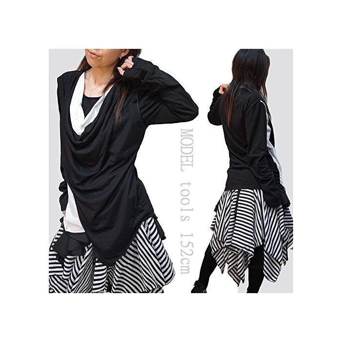 Hippies 유니섹스 사이즈 드랩(장식주름) 펑크 V계 모드 살롱계 페이크 레이어드 변형 T셔츠 55-0092 WTE
