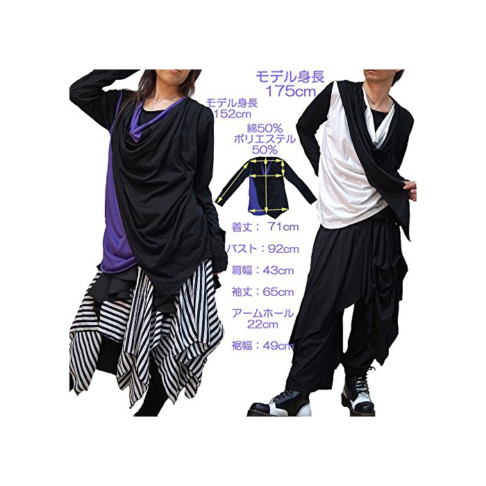 원본상품명: ユニセックスサイズ ドレプ パンク V系 モド サロン系 フェイクレイヤド 形 Tシャツ 55-0092 WTE