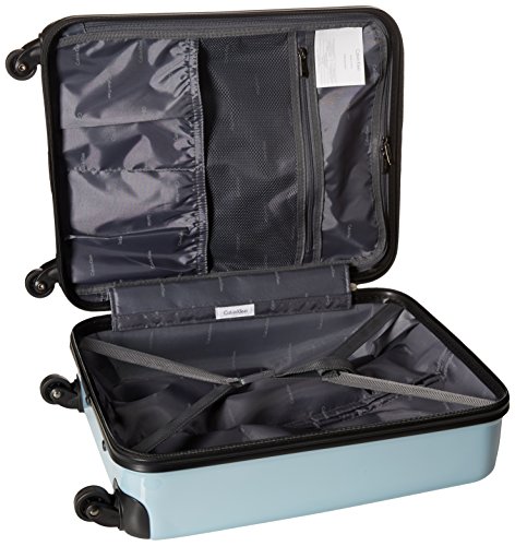 -. Feature : Embedded TSA lock / 100 percent full lined interior / 8 multi-directional swivel wheels / Chrome and sure grip trolley handle / 15.5x7.5x21
