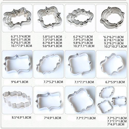Plaque Frame Cookie Cutter 4Pcs/Set, Stainless Steel Pastry Biscuit Cookie Cutter Set Fondant Pancake Cutters Mold (Style 1)