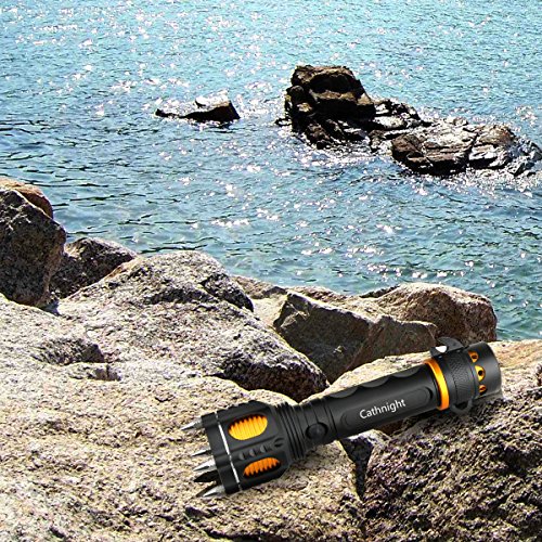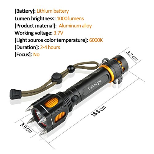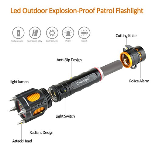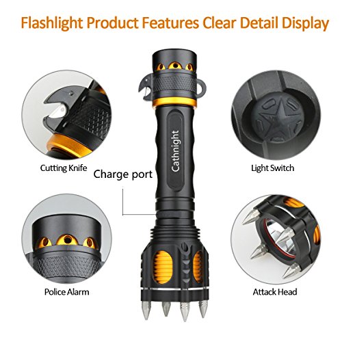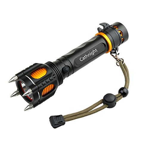 Cathnight Tactical Flashlight 1000 lumens,Waterproof Military LED 5 mode Handheld Flashlight Torch with Attack Head and Audible Alarm Tail Design for Defense or Emergency