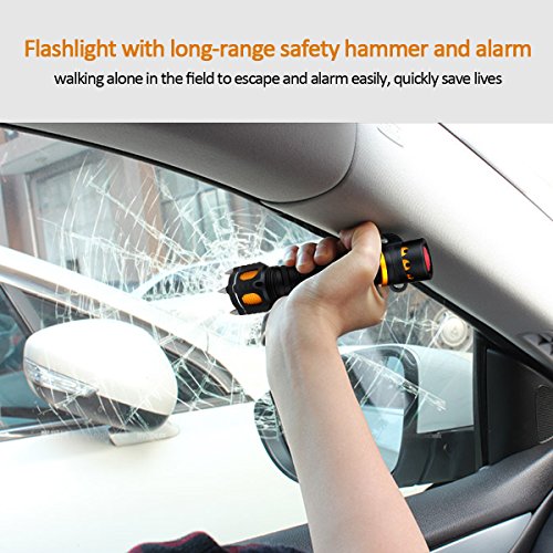 - √ Four Diamond attack heads, can break the window in an emergency situation,With blade at flashlight button side, can easily cut off ropes in gloves,attack head and audible alarm tail design, great for defense or emergency situation!