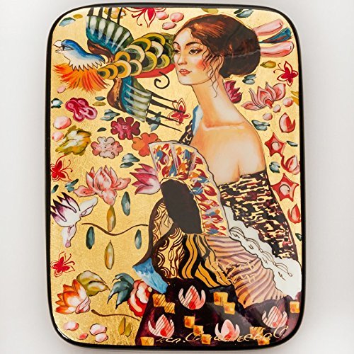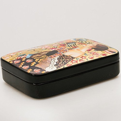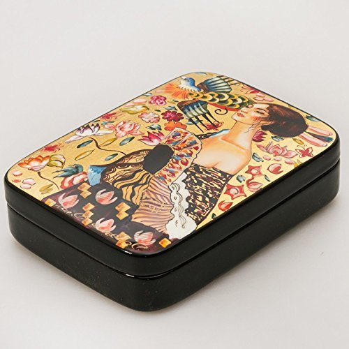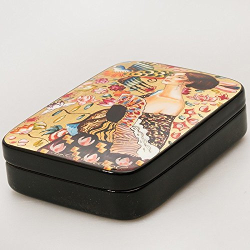 Beautiful Hand-painted Papier-mache Lacquer Box for Jewelry Lady with Fan (G. Klimt) Great Gift for Women