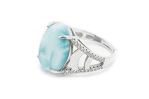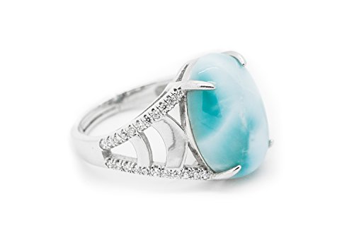 -. Feature : ★Larimar Gemstones with 925 Sterling Silver Ring Hand Made for Women / ★ Size Adjustable Individually Hand Crafted of 925 Sterling Silver with a high-grade Silver Rhodium finish to protect from tarnishing. The Rhodium will enhance the color of the silver and reduce tarnishing and metal allergies. / ★Design in New York, Stone Polish in Dominican Republic, Hand Crafted in China. / ★Larimar is a very unique stone, it has a unique blue color and pattern, each of our stone are individually hand picked, color and pattern might be vary. / ★All designs are Packaged in Gift Box and Bag, Perfect for Any Occasion and its also very easy to clean