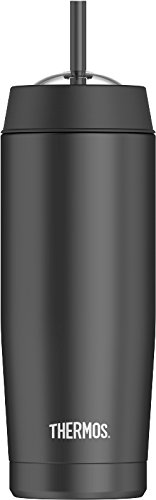 The thermos brand 16 ounce vacuum insulated cold cup with straw is an ideal choice for keeping your chilled beverages cold while you're on the go. This cold cup features thermos vacuum insulation technology to maximize temperature retention in order to keep your cold drinks cold for up to 9 hours. Each cold cup is made of durable stainless steel and has a convenient clear dome lid. The removable straw is easy to clean and the straw and cup are dishwasher safe. Great for use with smoothies, cold juices, iced teas and iced coffee. Product not for use with hot liquids.Feature