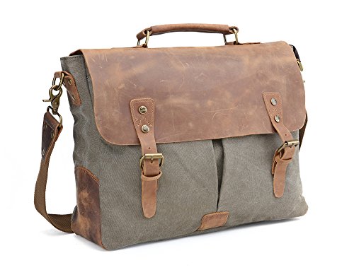 -. Brand : Gootium -. Department : mens -. Feature : This Messenger Bag Is Made Of 16 Oz Pure Cotton Washed Canvas With Softer Custom Cotton-Rich Pearl Sail Canvas Lining / Full Grain Leather Used In This Canvas Messenger Bag Will Look Fantastic For Anyone To Carry To A Casual Event / Using Custom Copper Zipper (EU BS-3084 Standard Test Approved) And Zinc Alloy Belt Buckle For Carry Your Necessities In A Secure Way;Especially The Snap Hooks Were Made Of Zinc Alloy Material And Provided By Professional Manufacturer That Will STAND THE TEST OF TIME / Overall Dimension: Approx. Large Size: 15.6" x 4.1" x 11.8" / 39 x 11 x 30(L x W x H)Hold Up To 15.6" Laptop; Medium Size: 14" x 3.9" x 10.3" / 34 x 10 x 26 cm (L x W x H) Hold Up To 14" Laptop / This Canvas Messenger Bag Features A Classic Shape And Quality Construction And Ample Interior Room Accommodates A 14 Or 15.6 Inch Laptop As Well As Holding A Variety Of Other Items -. Model : 21108 -. MPN : 21108 -. PackageQuantity : 1 -. PartNumber : 21108 -. ProductGroup : Apparel -. ProductTypeName : APPAREL -. Title : Gootium 21108 Canvas Messenger Bag For 14-15.6" Laptop Full Grain Leather Trim